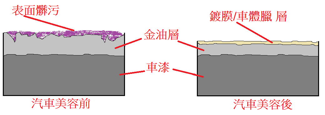 鍍膜跟一般美容不太一樣的地方是為了將車漆完全的與外界隔絕,隔去一切會讓車漆氧化的