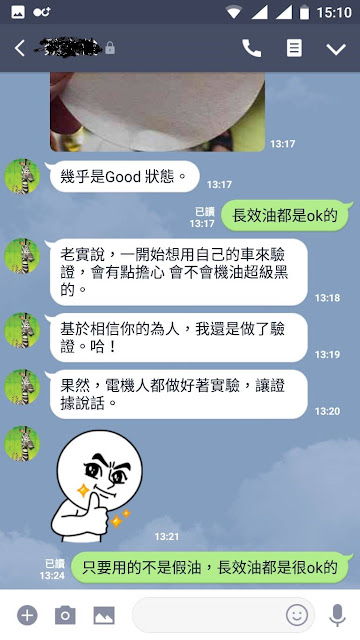 結果現在他終於也相信其實現在的機油使用里程數並非想像中的短,不需要那樣的勤換,除