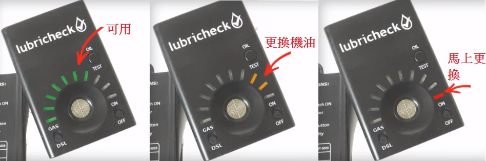 Lubricheck oil tester,這個總共有分成10格,1~7亮燈代表油質都還是ok的,第八到第九代表