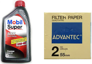 (定性慮紙二號)來檢測,將機油滴在濾紙上靜置16~20小時後看擴散結果可判斷油質,其原理