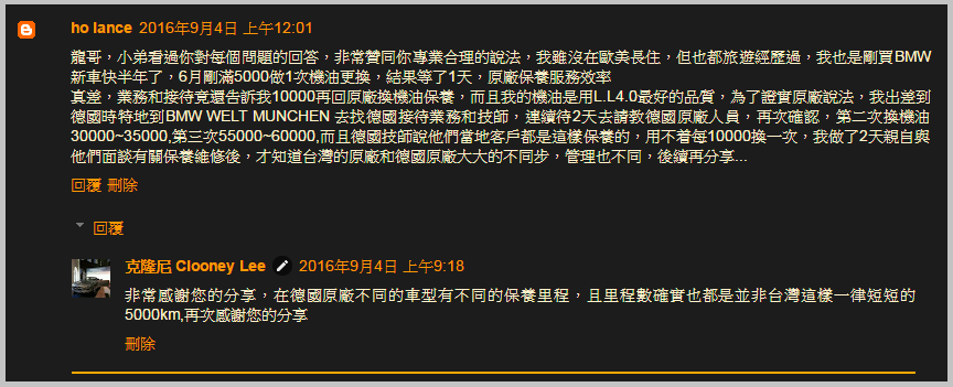 而在一早一個閱讀Clooney部落格的車友在留言板上留下了他親自詢問德國原廠的分享,