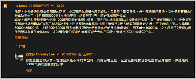 為了確任保養里程有車友甚至利用到德國出差的機會親自到德國原廠詢問他將過程分享出來