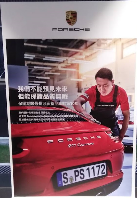 敘舊,言談之間發現了一張廣告看板,原來是保時捷原廠推出延長保固最長可以到車齡10年。